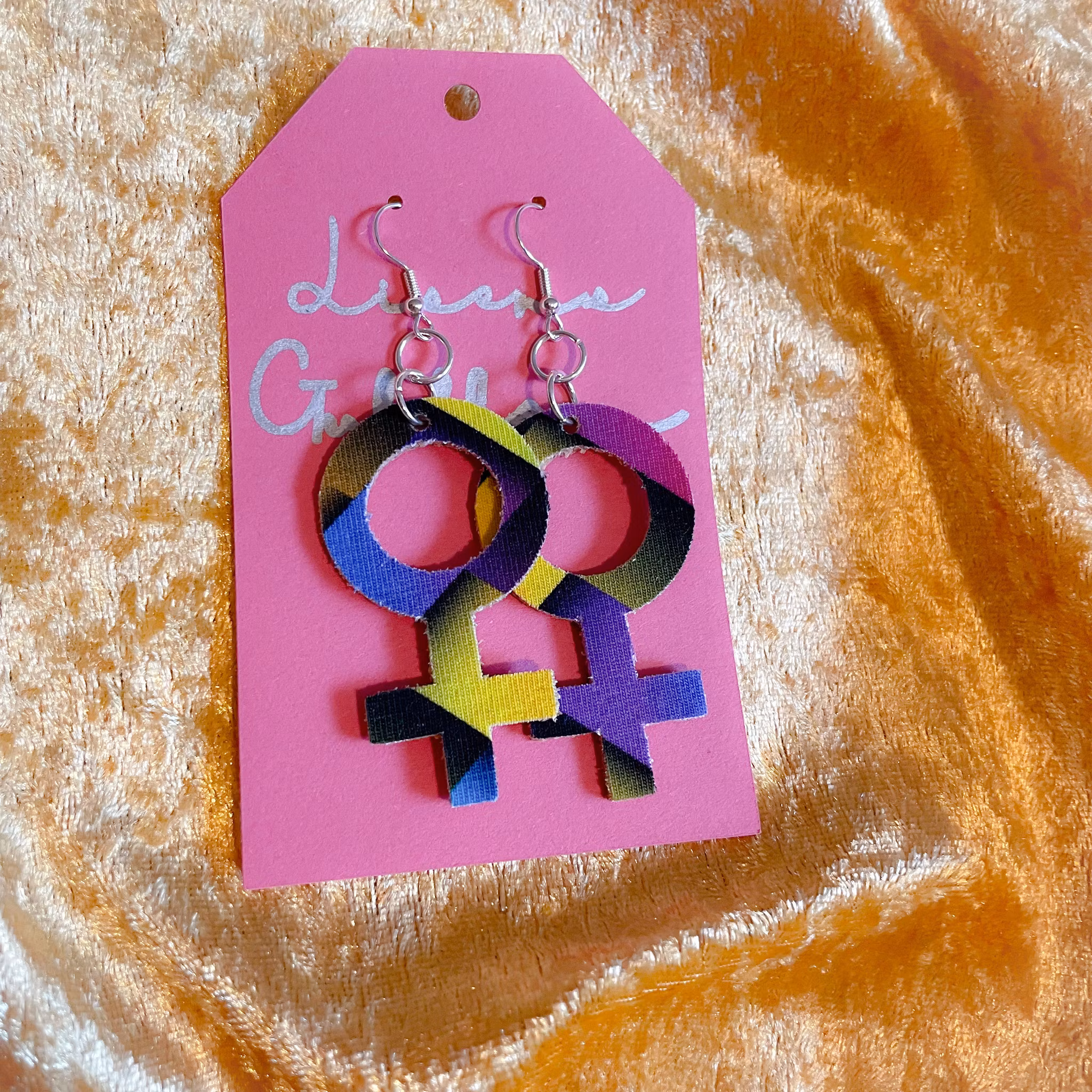 Örhängen av kork och spillbitar från klädsömnad, oftast i trikå. Örhängena är unika i sig och görs i liten skala utifrån vilket tyg som finns tillgängligt.