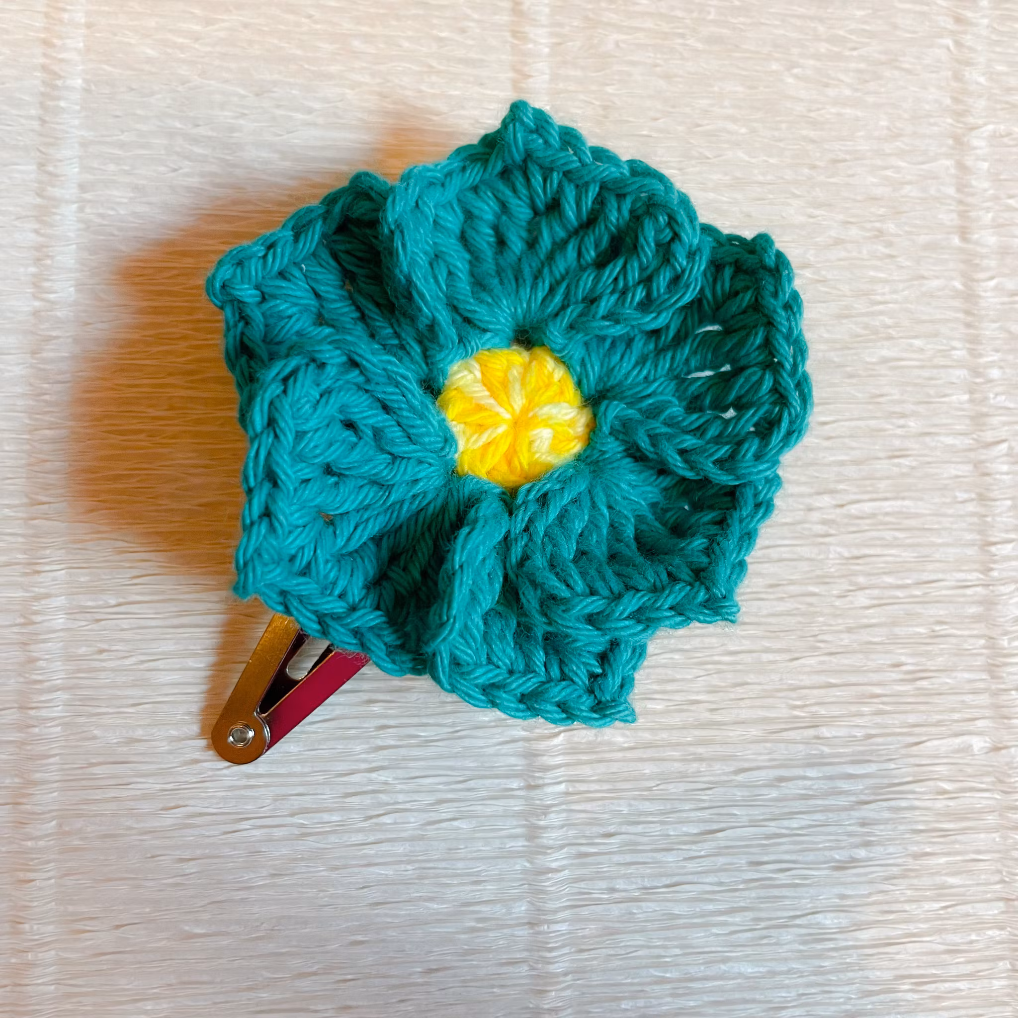 Hårspänne virkad blomma mörkturkos 120 kr Hårspänne med virkad blomma i 100% bomull.Gjort från OEKO-TEX certifierat garn I lager. Lägg i korgen Dela Lagersaldo: 1 Artikelnummer: 146 Information Hårspänne med virkad blomma i 100% bomull.Gjort från OEKO-TEX certifierat garn